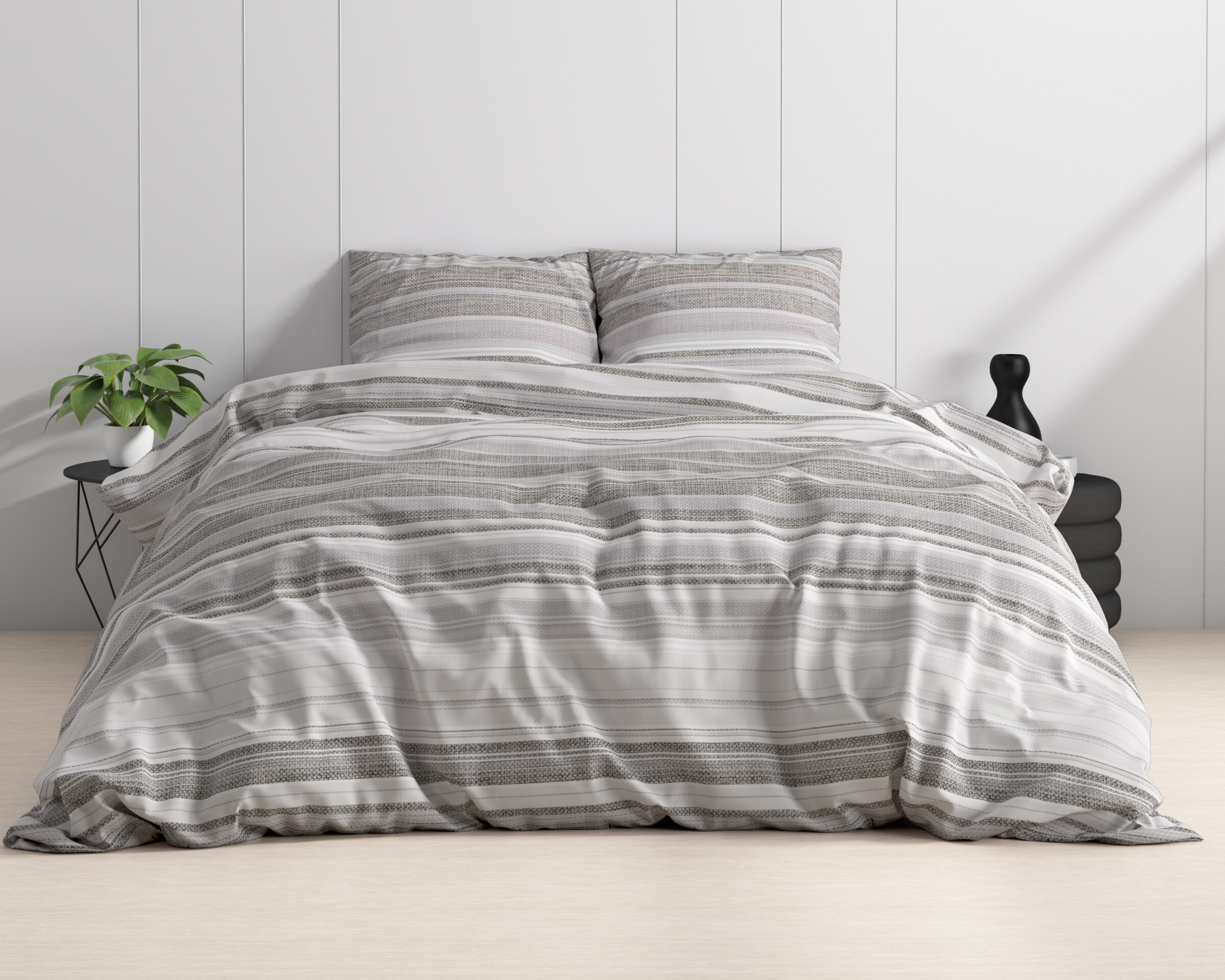 Geef je slaapkamer een rustgevende en serene uitstraling met het Colin dekbedovertrek. Het horizontale strependessin heeft verschillende grijstinten waardoor het geweldig in de landelijke slaapkamer staat. Met een set extra kussens en een bedsprei creëer je een luxe sfeer waar je heerlijk tot in tot rust komt.