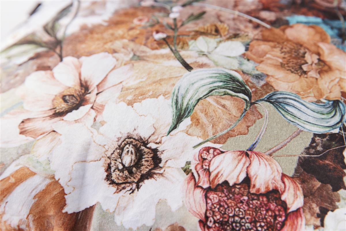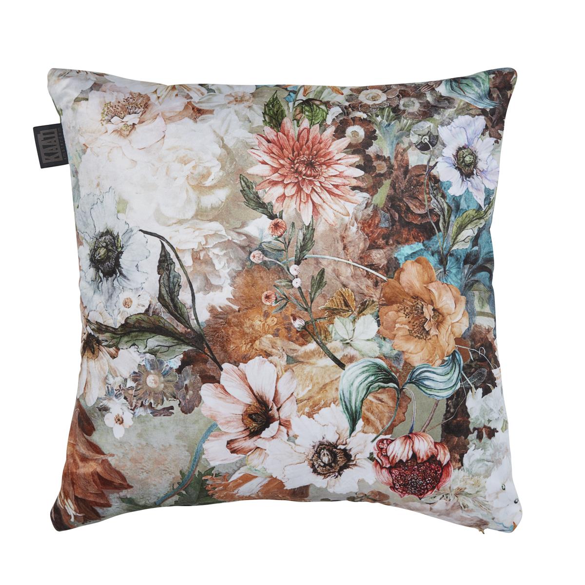 Geef je interieur een vintage vibe met sierkussen Anea. Dit sierkussen heeft een rijke print van geschilderde bloemen in de kleuren groen, roze, rood, lila, wit, terra en zand. De achterzijde van het kussen heeft een effen vergrijsd groene kleur.De voorkant van sierkussen Anea is gemaakt van 100% polyester velvet en de achterkant van 100% katoen. Het formaat is 43 x 43 cm. Het kussen heeft aan de onderkant een ritssluiting en wordt geleverd inclusief een veerkrachtig polyester binnenkussen. Leuk detail: het sierkussen heeft een gouden puller aan de ritssluiting in de vorm van een Amsterdams grachtenpandje. Het kussen is niet geschikt voor de wasmachine en droger.
