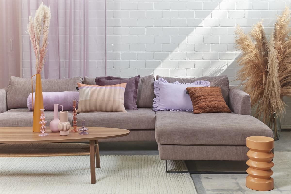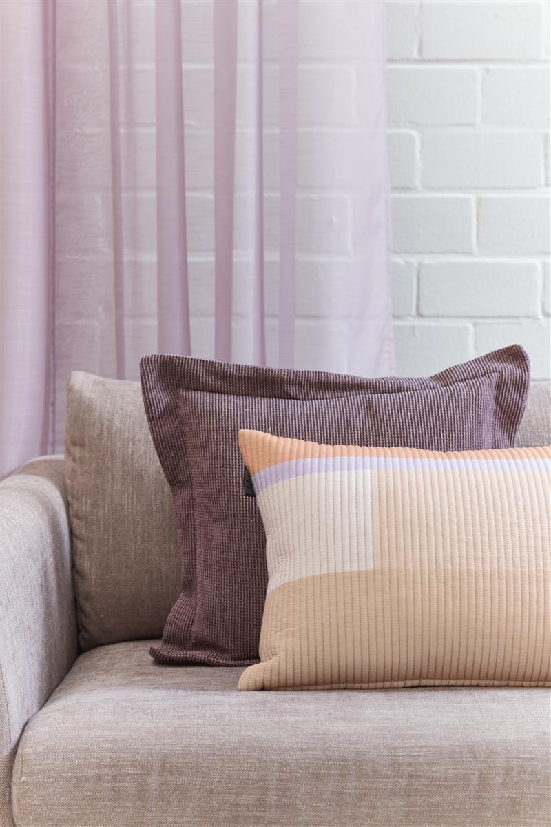 Voor het maken van dit kussen wordt textiel ingezameld en op kleur gesorteerd. Door een mechanisch recycleproces (het textiel wordt in stukjes gehakt en vervezeld) worden er nieuwe garens gemaakt. Omdat de stoffen op kleur gesorteerd worden, hoeft er geen water, verf of chemicaliën aan te pas te komen. Ook de vulling van het sierkussen is duurzaam, dit is namelijk 100% gerecycled polyester.