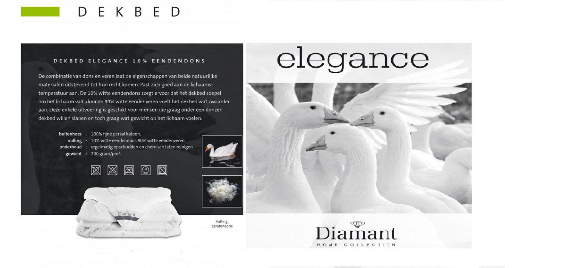 De combinatie van dons en veren laat de eigenschappen van beide natuurlijke materialen uitstekend tot hun recht komen en past zich goed aan de lichaamstemperatuur aan. Het dekbed bestaat voor 10% uit wit eenden dons en voor 90% uit eenden veren. Door de veren voelt het dekbed wat zwaarder aan. Geschikt dus voor mensen die graag onder een donzen dekbed willen slapen en toch graag wat gewicht op het lichaam voelen.