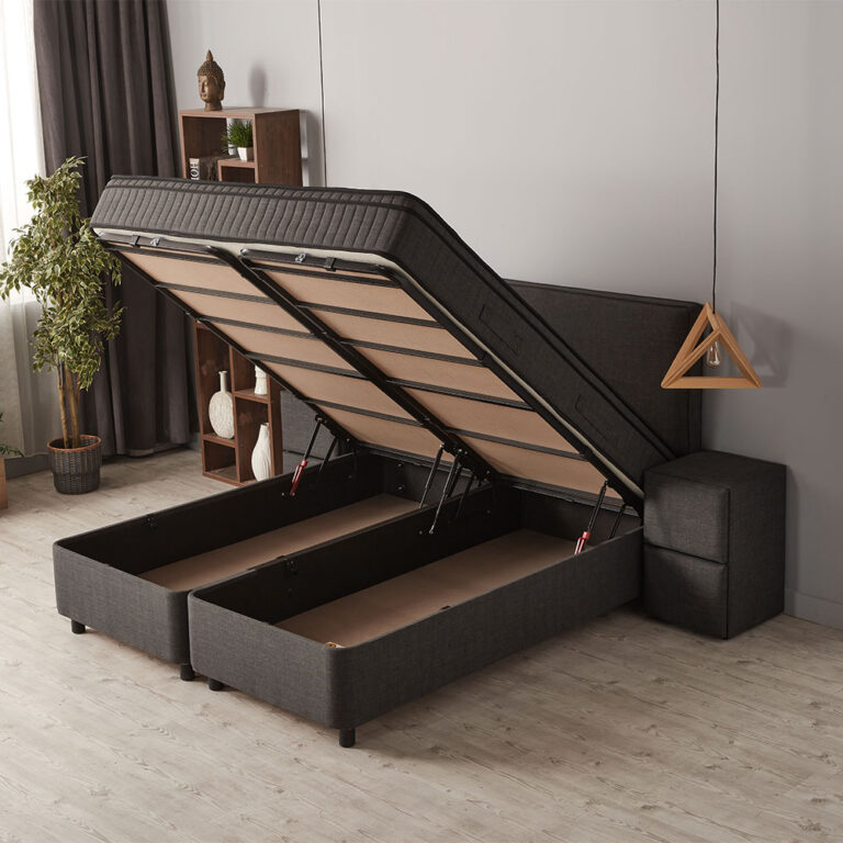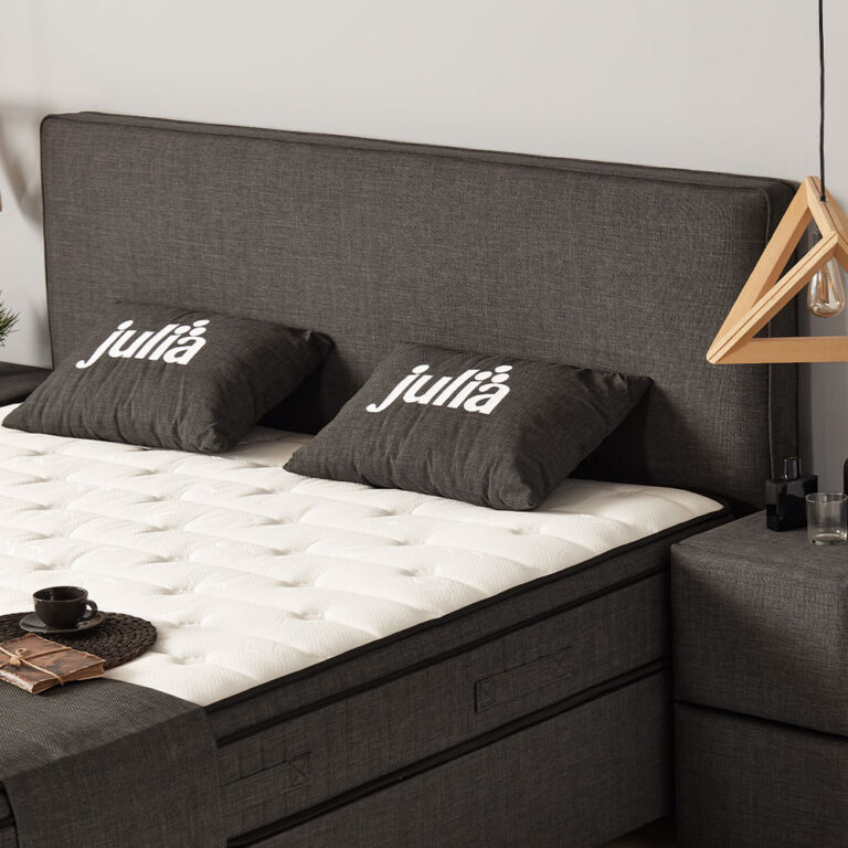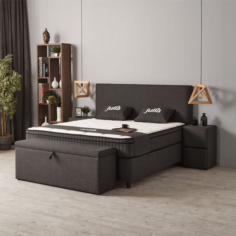 Het model Julia heeft 2 opbergboxen die vanaf het voeteneinde geopend kunnen worden. Door de handige opbergruimte die zich onder het gehele oppervlakte van het matras bevind kunt u bijna alle gewenste spullen op een nette en handige manier opruimen. Bestaande uit een volledig metalen frame gestoffeerd in een luxe meubelstof is dit de ultieme samenwerking tussen stevigheid en uitstraling. Door de gasveren die hulp bieden bij het openen van de boxen is de enorme opbergruimte die dit bed bied extra makkelijk te bereiken.